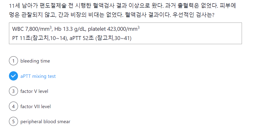 이해를 위해 부가적인 설명을 덧붙였지만, 결론적으로는 aPTT가 연장되었다면 가장 먼저 mixing test를 한다고 알고 계시면 되겠습니다.