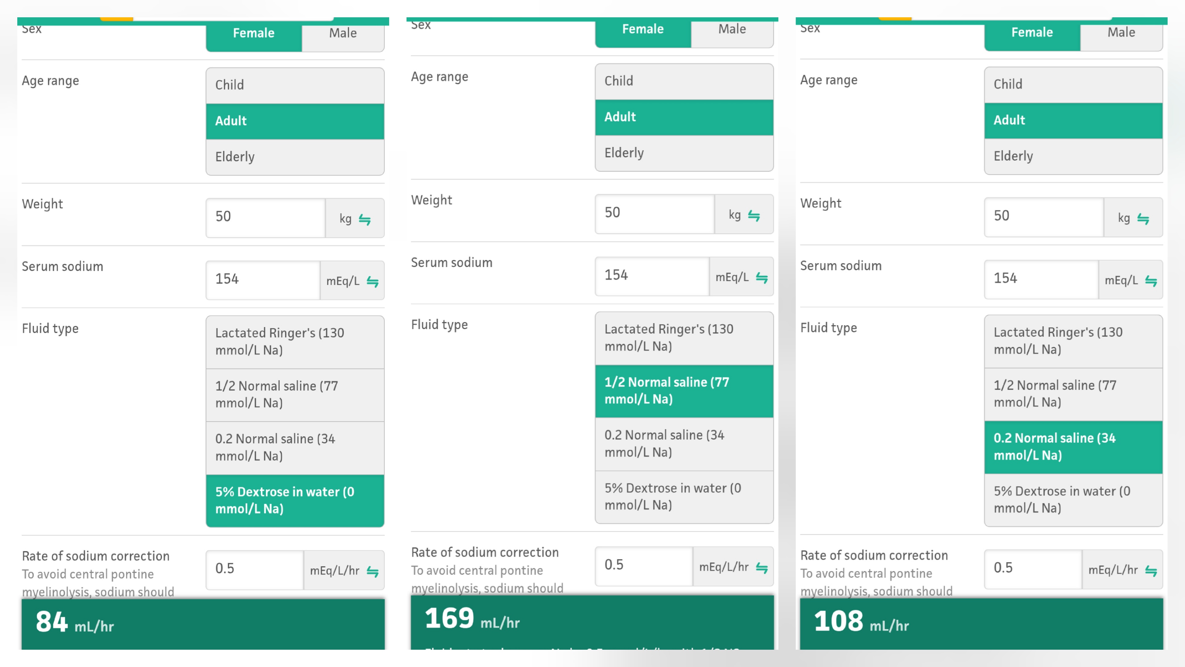 현재 sodium 154, Target sodium을 140으로 잡고,
